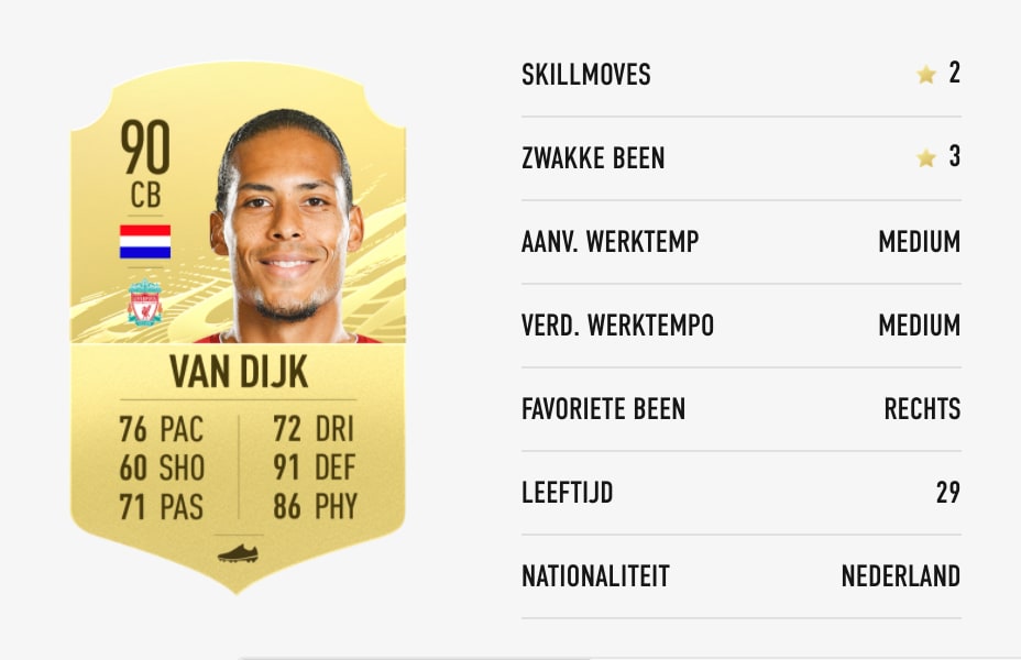 His potential is 91 and his position is CB. Hes got an overall rating of 89 down one from FIFA 21 with the star man also boasting some pretty tasty. Fifa 21 virgil van dijk cardtype card rating stats attributes price trend reviews.